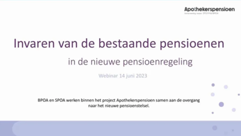 SPOA is per 1 januari 2025 overgestapt van AZL naar Visma Idella als nieuwe pensioenuitvoeringsorganisatie. Deze beslissing komt voort uit een grondige evaluatie van de huidige en toekomstige behoeften van onze deelnemers en heeft tot doel bij te dragen aan het verbeteren van de uitvoering van de nieuwe pensioenregeling. Met de nieuwe flexibele pensioenregeling is een beter passend pensioen- en beleggingsbeleid voor de apothekers mogelijk. Visma Idella voldoet het beste aan onze eisen om de nieuwe pensioenregeling uit te voeren