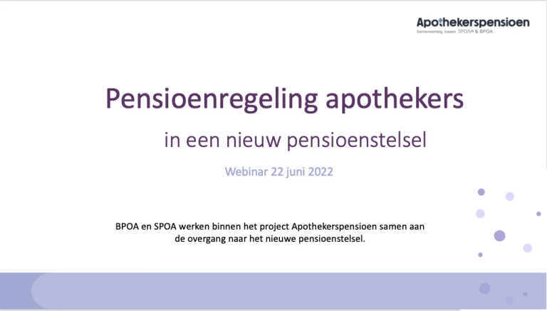 Lid zijn van BPOA betekent dat u meebeslist. Over de inhoud van de (toekomstige) pensioenregeling voor apothekers werkzaam in de openbare apotheek. Over de gewenste hoogte van de pensioenopbouw en de bijbehorende premie. Als zelfstandig openbaar apotheker, als apotheker in loondienst, of als apotheker in de specialisatie tot openbaar apotheker.